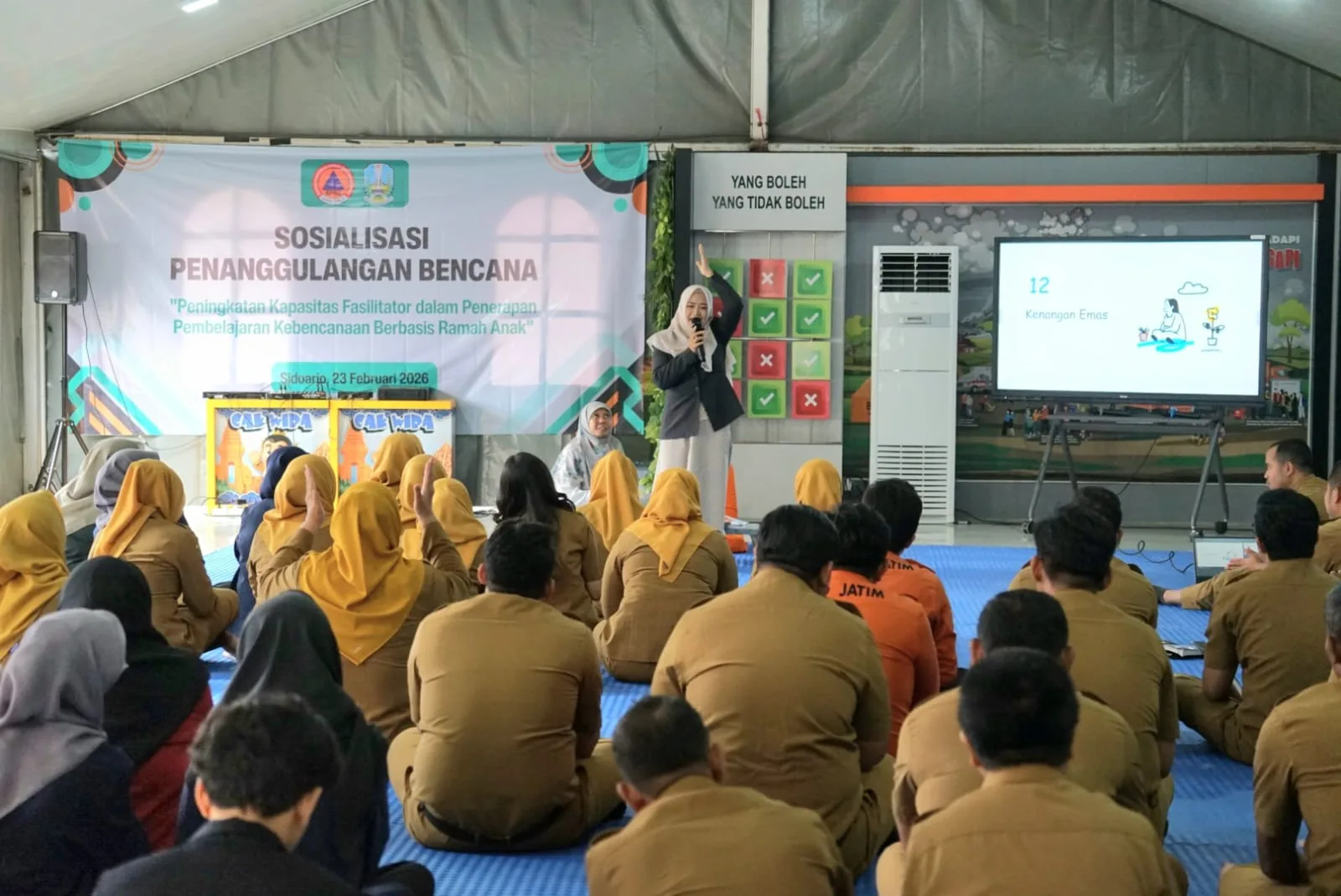 SIDOARJO – Terus meningkatnya jumlah kunjungan kelompok usia dini ke Taman Edukasi Bencana direspons BPBD Jatim dengan berupaya meningkatkan kapasitas dan kompetensi pegawainya, utamanya dalam hal penguasaan ilmu pedagogi untuk anak-anak.