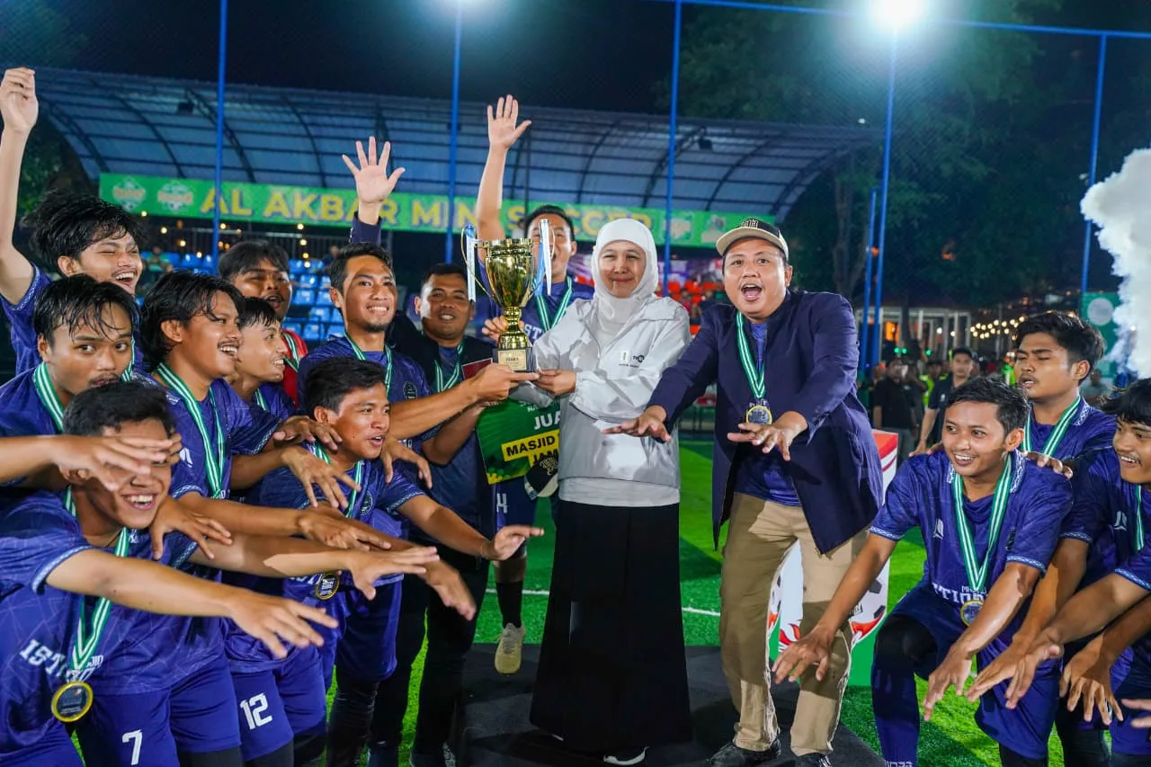 SURABAYA – Gubernur Jawa Timur Khofifah Indar Parawansa menyaksikan langsung serunya laga final Marbot Soccer League Ramadhan Series yang digelar di Al Akbar Sport Center, Selasa (10/3/2026) malam.