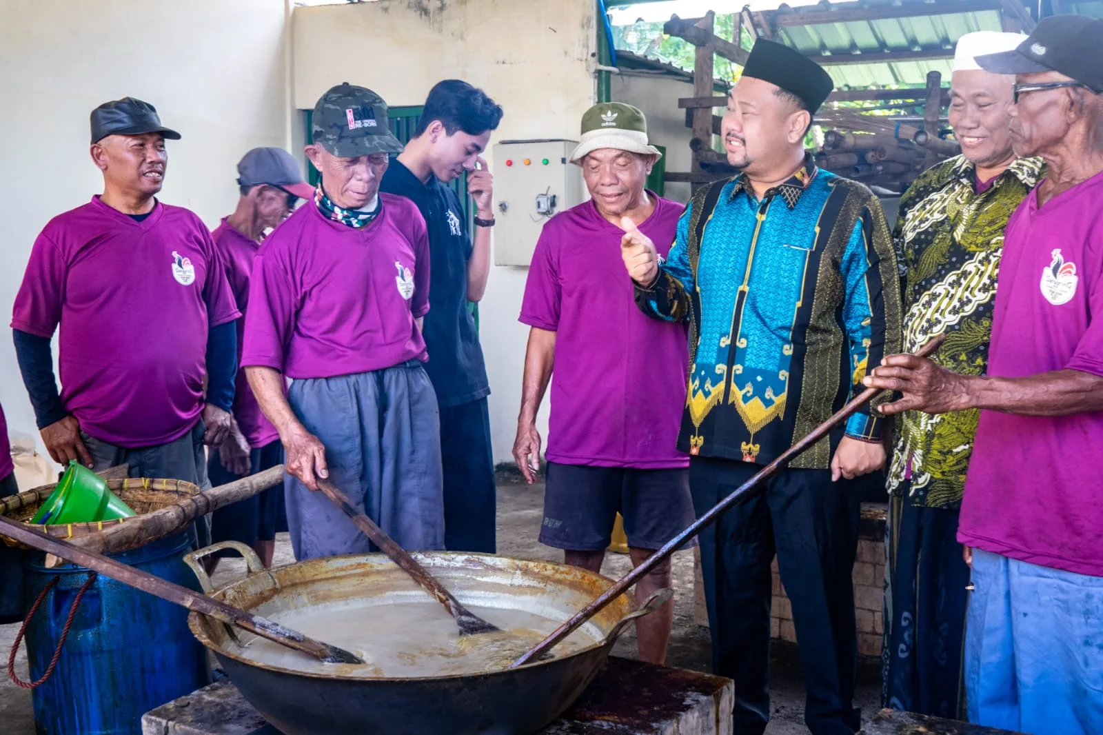 GRESIK – Bupati Gresik Fandi Akhmad Yani meninjau langsung proses pengolahan kolak ayam (Sanggring) di area Masjid Jami’ Sunan Dalem Desa Gumeno, Kecamatan Manyar, Gresik, Kamis (12/3/2026).