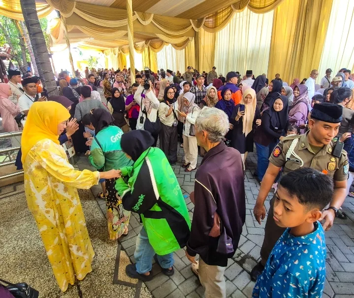 Sejak pagi, ribuan warga dari berbagai daerah memadati area sekitar kediaman Gubernur Khofifah.