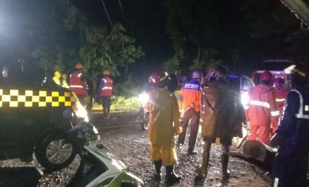 Peristiwa tersebut terjadi sekitar pukul 21.30 WIB setelah hujan dengan intensitas ringan hingga lebat yang disertai angin kencang mengguyur wilayah setempat sejak pukul 20.30 WIB hingga 22.00 WIB. Pohon jenis trembesi yang tumbang sempat menghambat arus lalu lintas di jalur utama.